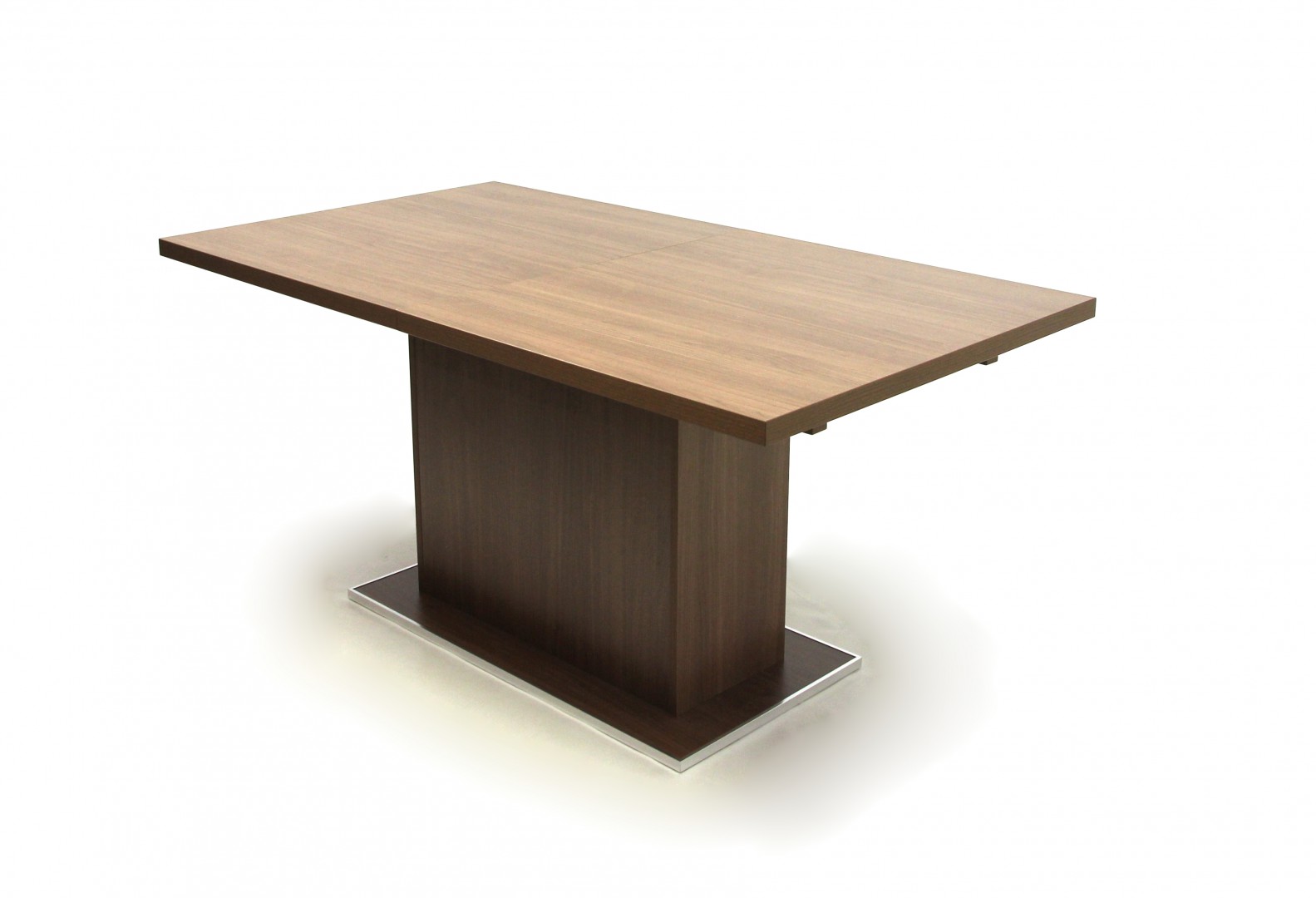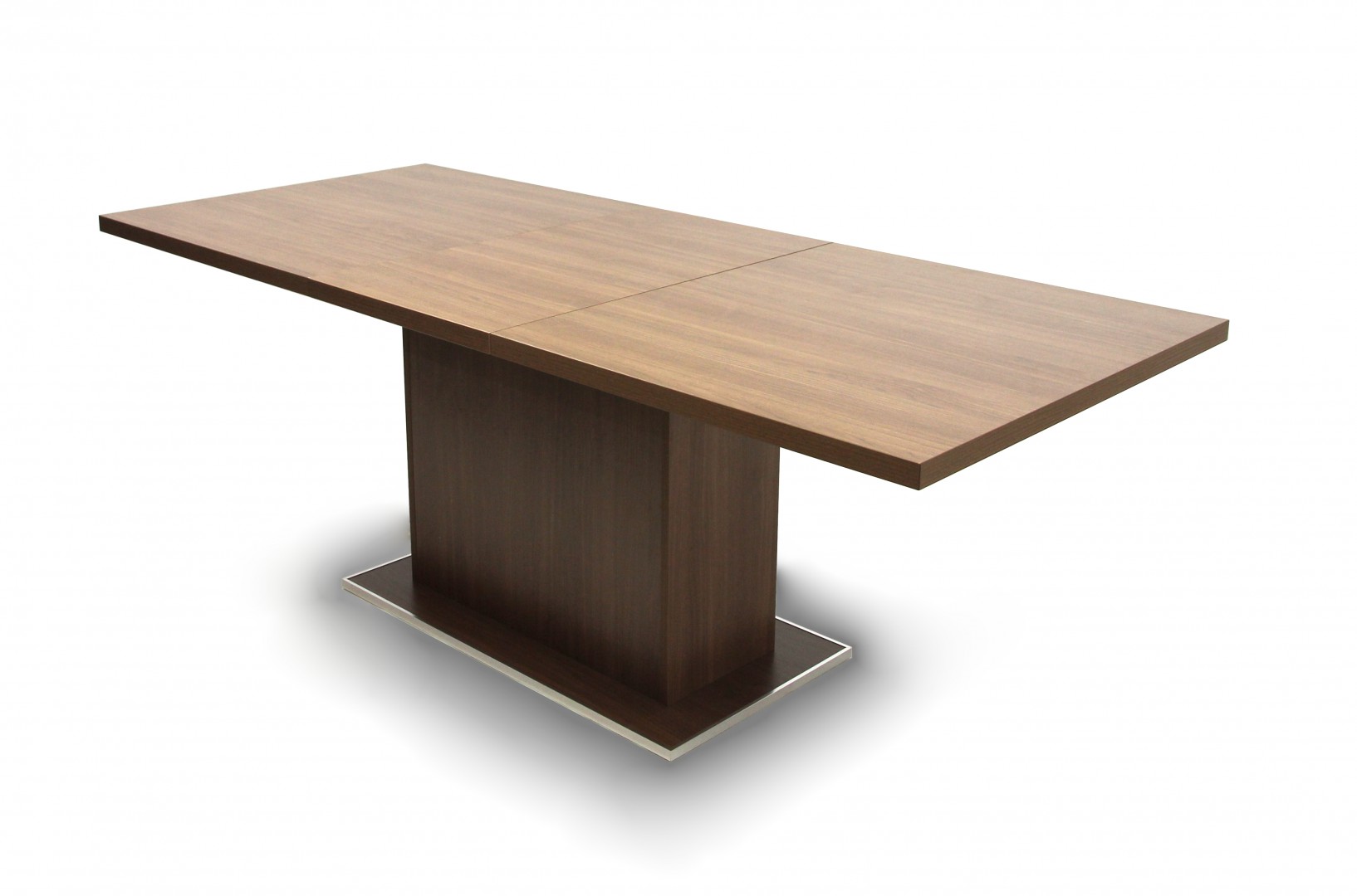 Az asztallap és a lábazat laminált faforgácslapból készült duplungolt kivitellel, ABS élzárással és PU ragasztási technológiával (Víz-, pára és hőálló, tartós kötést biztosít, ennek köszönhetően a bútorok élettartalmát jóval megnöveli!). Nagyobbítás, fém vasalattal. A lábazat központi kialakítású. A talp polírozott alumínium profillal van ellátva. Méret: 90 x 160+(50) x 75,5 cm (Szélesség x Hosszúság x Magasság) Bruttó súly : 63 kg Csomagolás : 1 db / 2 doboz